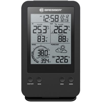 База для анемометра (ветромера) Bresser «3 в 1» – это основной модуль с ЖК-экраном, который можно подсоединить к уже имеющейся метеостанции. Таким образом, в квартире будет два прибора, собирающих данные с подключенных датчиков. Так как связь между ними осуществляется по радиоканалу (а значит, без прокладки проводов), их можно будет без проблем установить в разные комнаты. Также эту базу можно использовать для замены основного модуля, например в случае его поломки.
