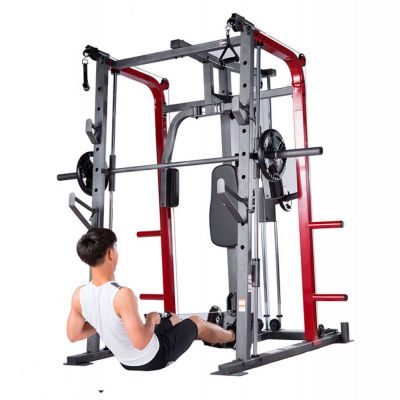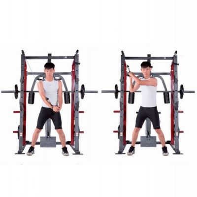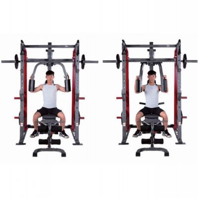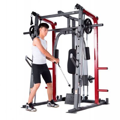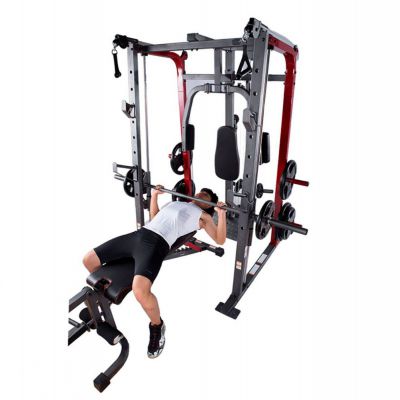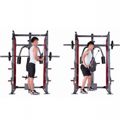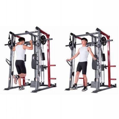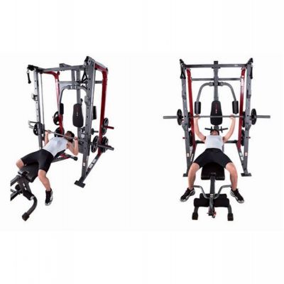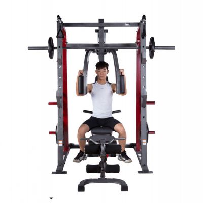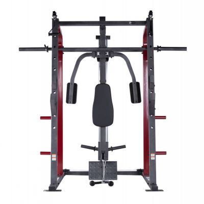 Тренажер предназначен для выполнения различных силовых упражнений (Машина Смита, тяга сверху / снизу, баттерфляй, парта для бицепса, сгибание / разгибание, жим лежа на скамье дополнительной штанги (штанга и диски опция)).