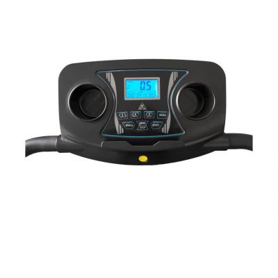 Наивысший вес пользователя до ста двадцати кг. Беговое полотно размером сто десять х сорок см и толщиной 1.4 мм, под которым располагаются амортизирующие прокладки, создающие больше удобные обстоятельства для тренировки. Полотно находится под фиксированным наклоном в три градуса. Тропинка с поручнями для реабилитации, на которых располагаются сенсорные датчики пульса. В комплекте ключ безопасности для аварийной остановки. На консоли расположены держатель для планшета и 2 подстаканника, а еще ЖК-дисплей с голубой подсветкой. Дисплей отображает такие параметры как скорость, время, расстояние, пульс и калории.