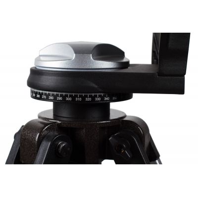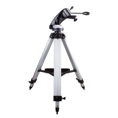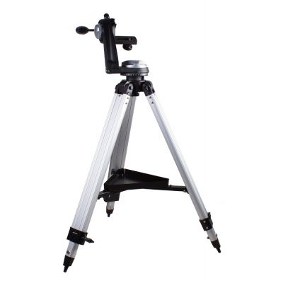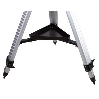 Монтировка установлена на прочную и надежную алюминиевую треногу. Высота треноги регулируется. Чтобы во время наблюдений необходимые аксессуары всегда были под рукой, тренога снабжена специальным лотком.