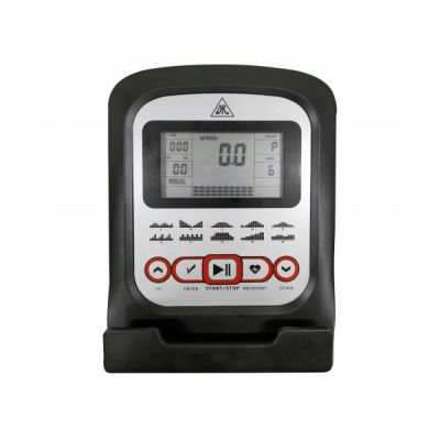 Монохромный LCD дисплей с синей подсветкой выводит основные параметры занятия. Также на передней консоли имеется подставка под телефон или планшет. Предусмотрена 21 программа тренировки.