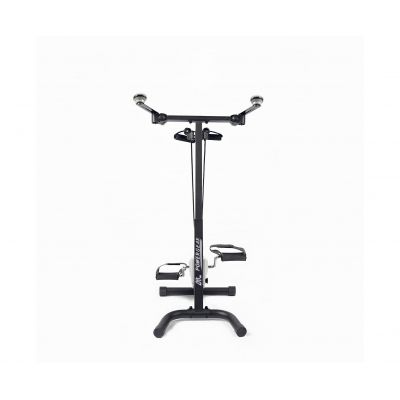 Велотренажёр двойной DFC B810W с накладками и ручками белого цвета для домашнего использования. Многофункциональная модель позволяет тренировать как руки, так и ноги одновременно или врозь. Для разнообразия тренировок в комплекте поставляются эспандеры.