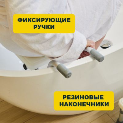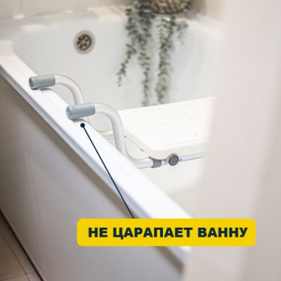 Предусмотрена регулировка сидения по ширине, поэтому оно подходит для большинства видов и моделей ванн. Ручки выполнены из алюминия с антикоррозийной обработкой, что обеспечивает изделию прочность и максимальную грузоподъемность (до 120 кг). Благодаря противоскользящим наконечникам гарантирована высокая безопасность, а поверхность ванны – защищена от сколов и царапин.