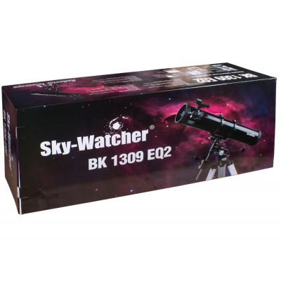 Для поиска небесных тел используется оптический искатель с 5-кратным увеличением. Рефлектор Sky-Watcher BK 1309EQ2 формирует яркое изображение без хроматических аберраций. В комплект входят окуляры 25 мм и 10 мм.