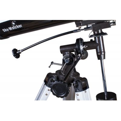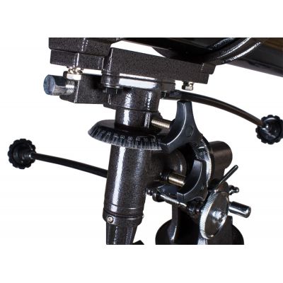 Монтировка снабжена механизмами тонких движений. Для максимального ровного и плавного ведения на ось прямого восхождения можно установить моторный привод (приобретается отдельно). Высоту алюминиевой треноги можно регулировать.