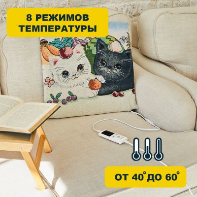 В устройстве используются ультратонкие нагреватели, которые снабжены защитой от сбоев в электросети и перегрева. Предусмотрена также подкладка из синтепона и чехол из льняной ткани. Электрогрелку можно стирать в машинке-автомат, для чего необходимо предварительно отсоединить пульт и шнур питания.