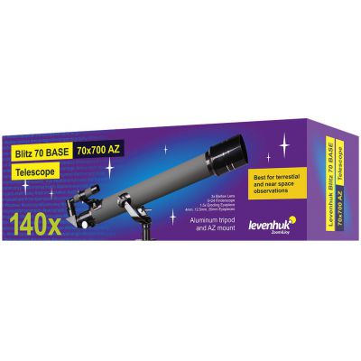 С Levenhuk Blitz 70 BASE новичку будет легко открывать тайны космоса. Этот телескоп создан специально для тех, кто никогда ранее не был знаком с этим оптическим прибором и делает только лишь первые шаги в изучении астрономии. Телескопом легко управлять, он хорошо работает по ближнему космосу, способен показать яркие объекты дальних уголков Вселенной и комплектуется всеми необходимыми аксессуарами.