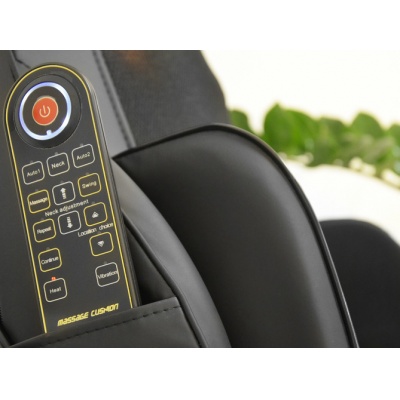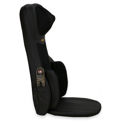 Основные массажные ролики имеют плавающую конструкцию, поэтому автоматически подстраиваются под каждого пользователя в зависимости от его комплекции и роста. В области талии и в сидении есть функция вибромассажа. Управление массажной накидкой осуществляется с помощью простого пульта, а функционал, помимо массажа, предусматривает также инфракрасный прогрев.