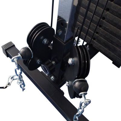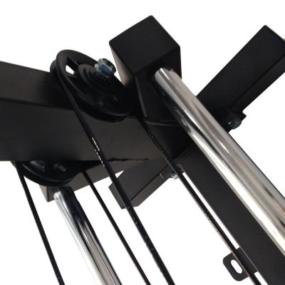Два независимых блока на общей базе возможно закрепить в удобном месте по всей высоте тренажера, всего 21 положение. Направляющая для блоков изготовлена из хромированного стального профиля размером 40х40 и толщиной 2 мм. Рама тренажера изготовлена из высококачественного стального профиля.