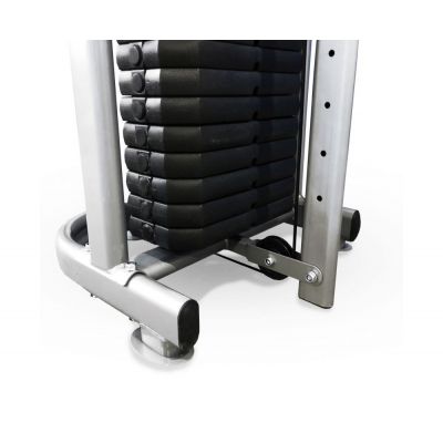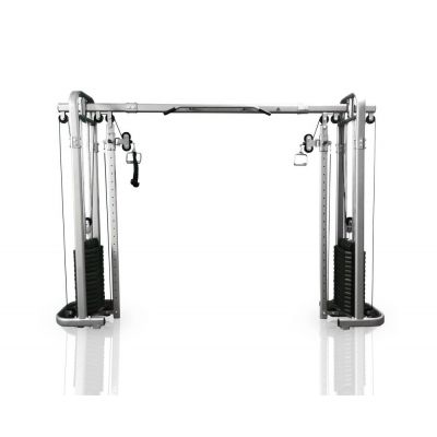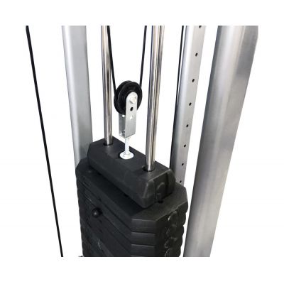 Кроссовер оснащен двумя тягами — металлическими ручками с нескользящим хватом. Ручки регулируются по высоте в 21 положении: можно выполнять упражнения на разные группы мышц и варьировать угол тяги. Силовые стеки весом по 75 кг входят в комплектацию. Вес пластин — 4 и 5 килограмм. Общая нагрузка регулируется при помощи фиксатора одним движением руки. Плавность хода стеков гарантируют ролики на подшипниках.