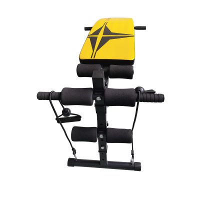 Изогнутая скамья для пресса DFC D102RY для домашнего использования складного типа. В комплекте 2 гантели и 2 эспандера.