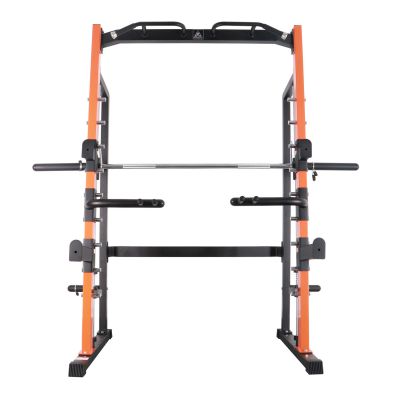 Тренажер Машина Смита на базе силовой рамы оснащен грифом, турником, брусьями, держатели для хранения дисков 51 мм.