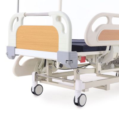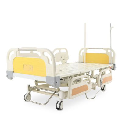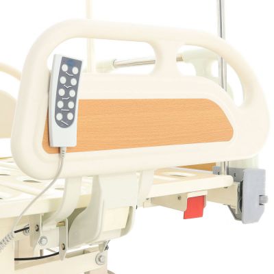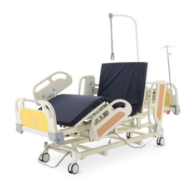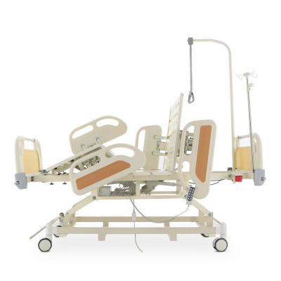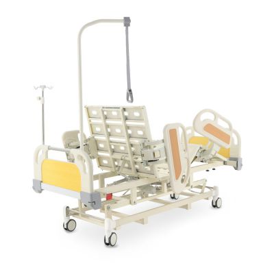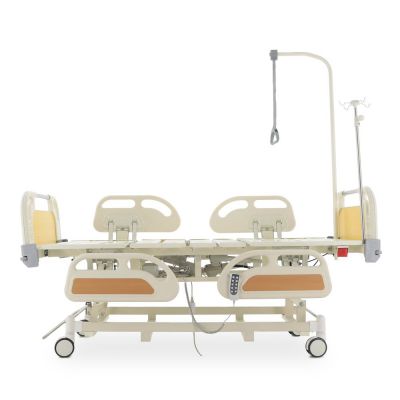 Медицинская, реанимационная электрическая кровать используется в учреждениях здравоохранения для пребывания в палатах интенсивной и общей терапии больных в тяжелом состоянии, больных с проблемами опорно-двигательного аппарата и пациентов, которые проходят процесс реабилитации после перенесенных операций. Модель оснащена карманом из прозрачного пластика для карточки пациента на ножной спинке, угловыми роликовыми бамперами на спинках, и пластиковыми заглушками на боковых ограждениях.