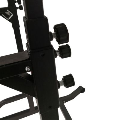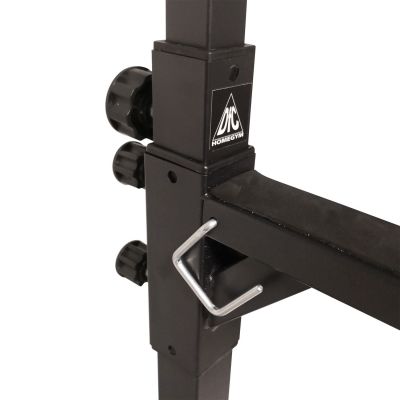 Держатели под штангу регулируются по высоте в диапазоне от 109 до 169 см в общей сложности на 15 уровней с шагом в 5 см.