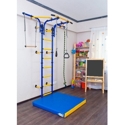 Достоинства: удобный для спортивных занятий, простой в установке и сборке и просто внешне симпатичный детский спортивный комплекс.