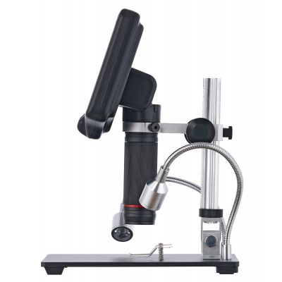 Диагональ встроенного экрана составляет 7 дюймов (около 18 см). Картинка с объектива выводится в цвете, она контрастная и хорошо читаемая. Для удобства работы экран можно отклонять от себя на небольшой угол. Общее увеличение можно изменять в диапазоне от 5 до 270 крат, оптическая часть увеличения – от 5 до 40 крат. Изображение также можно выводить на внешний экран, используя подключение через порт HDMI.