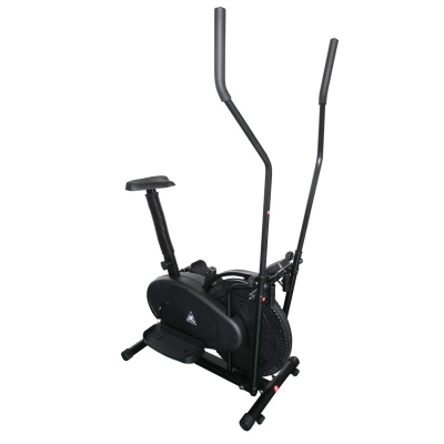 Эллиптический тренажер для домашнего использования. Тренажер имеет ременную систему нагружения с ручной регулировкой с помощью рукоятки на корпусе тренажера.