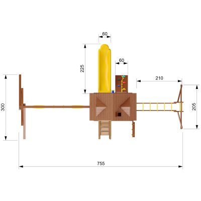 Спортивная площадка подходит для активных игр детей на свежем воздухе в любую погоду. Изготовлена из натуральной древесины и экологически безопасного пластика.