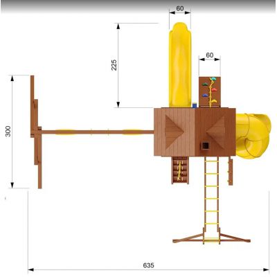 Игровая площадка разработана для активных игр детей на свежем воздухе в любую погоду, она изготовлена из натуральной древесины и экологически безопасного пластика.