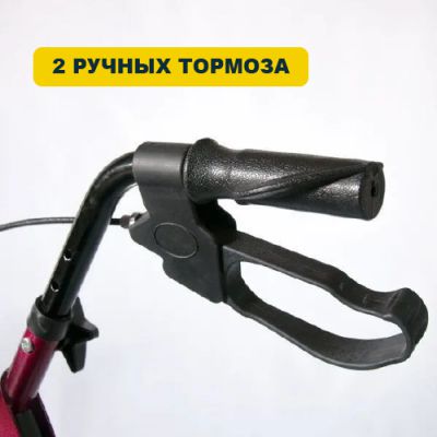 Изделие снабжено корзиной для покупок, сидением для отдыха, двумя стояночными тормозами. Поручни опоры прогулочной регулируются на удобную для пользователя высоту, обеспечивая максимальное удобство и безопасность в процессе передвижения.