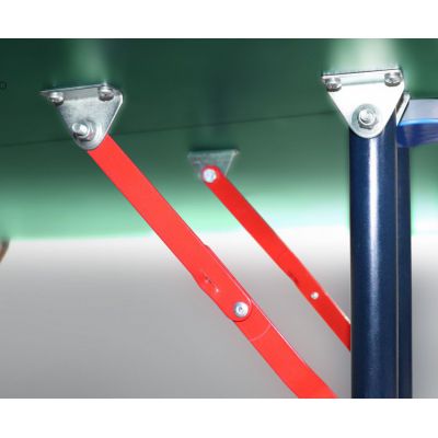 Раскосы ярко-красного цвета с надежной фиксацией обеспечивают устойчивость конструкции в разложенном виде и во время игры. Модель легко устанавливается и очень компактна при хранении.