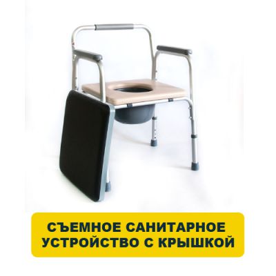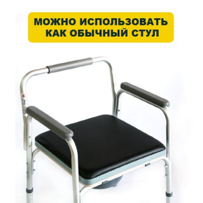 На ножках стула-туалета расположены нескользящие накладки, благодаря которым обеспечивается устойчивое положение на любом напольном покрытии. Подлокотники выполнены из пластмассы. Санитарное устройство имеет съемную конструкцию и оснащается крышкой. Оно выполнено из прочных материалов, которые устойчивы к многократным дезинфекциям.