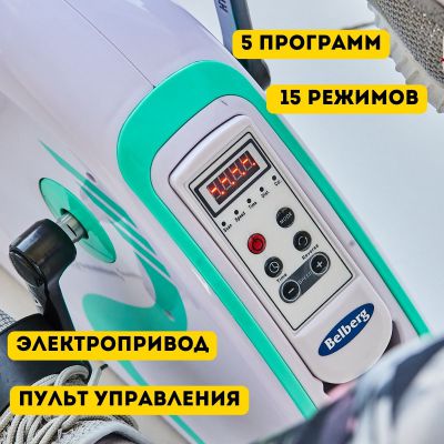 Большое преимущество модели – в наличии электропривода, благодаря которому не нужно прилагать больших усилий для работы с педалями. Можно постепенно увеличивать нагрузку с помощью дистанционного пульта, выбирать любой режим из пяти предложенных, настраивать скорость, время тренировки и другие параметры, которые отображаются на дисплее.