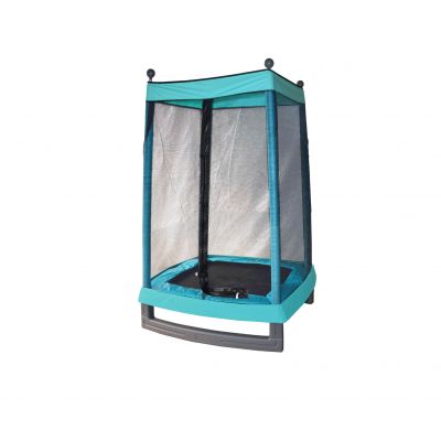 Детский батут DFC MONKEY с защитной стенкой сине-зелёного цвета для домашнего использования. Имеет компактные размеры и оснащён защитной сеткой.