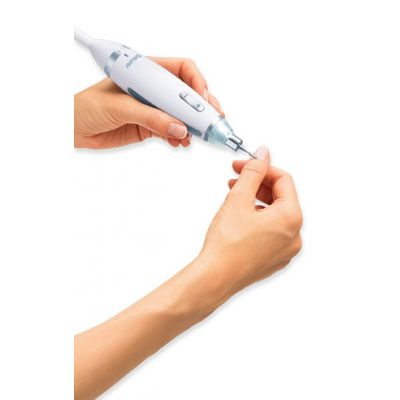 Имеет 10 высококачественных сапфировых насадок. Подходит для людей, страдающих сахарным диабетом – при усиленном нажатии прибор автоматически отключается, что исключает повреждение кожи лицами, которые менее чувствительны к боли.
