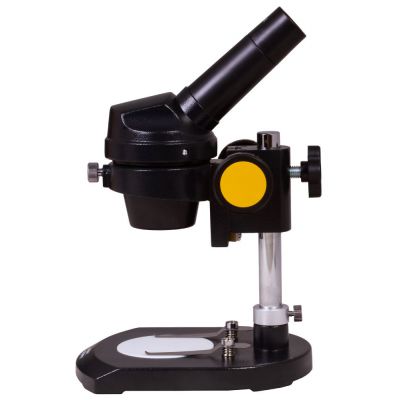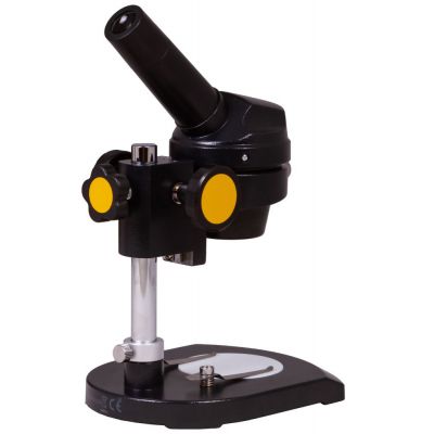 В микроскопе используется монокулярная насадка, которую можно поворачивать на 360°. Окулярная трубка наклонена под углом в 45°. Микроскоп дает одно увеличение в 20 крат, а наблюдения ведутся в естественном освещении. Оптический прибор можно ставить вблизи окна или использовать на улице – так образцы будут освещены наиболее равномерно и ярко.