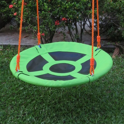 Комплекс включает в себя веревочные качели, качели - гнездо и качели для детей, и горку.