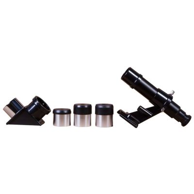 Телескоп комплектуется алюминиевой треногой, высоту ножек которой можно регулировать. Есть лоток для аксессуаров. В комплект поставки также включен оптический искатель с 5-кратным увеличением.