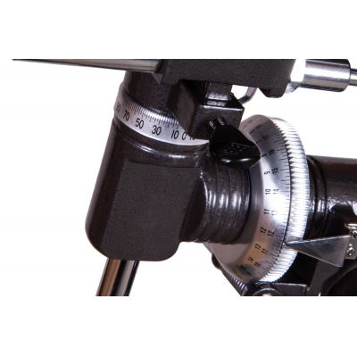 Оптическая труба телескопа установлена на экваториальную монтировку, которая хорошо подходит для изучения космоса. На освоение управления требуется время, но ведение астрономических объектов происходит просто и удобно. У монтировки плавный и мягкий ход, оптическая труба крепится надежно и прочно. Тренога сделана из алюминия, высоту ее ножек можно настраивать под рост наблюдателя. Есть лоток для аксессуаров.