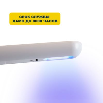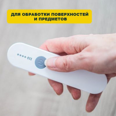 Это компактный портативный облучатель, который можно брать с собой на прогулку, в офис, на дачу, в поездку и т.д. Имеет простой функционал и помещается в кармане или сумочке. Эффективно справляется с обеззараживанием вирусов, бактерий, спор, микобактерий, грибков, риккетсий, микоплазм и других простейших организмов.