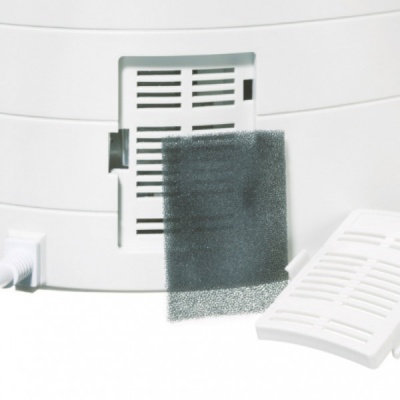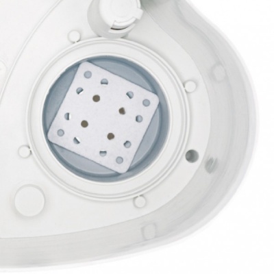 Для борьбы с накипью и в целях продления срока службы парового увлажнителя в конструкции имеются специальные подушечки. Функционал предусматривает два режима работы, а контрольные светодиоды – позволяют контролировать процесс увлажнения воздуха. Прибор изготовлен из ударопрочного пластика, а резервуар для воды имеет понятную индикацию.