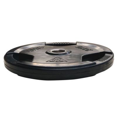Диск обрезиненный с хватом. Цвет чёрный. Металлическая втулка. Посадочный диаметр 51 мм. Вес диска 20 кг.