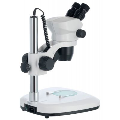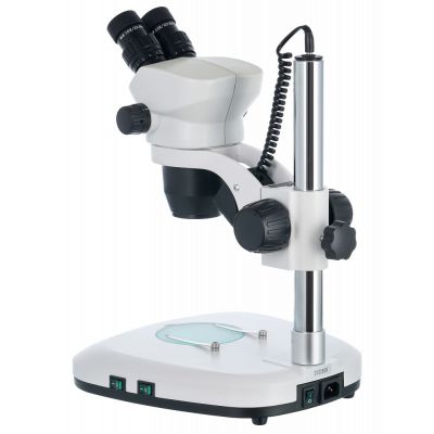 Конструктивно микроскоп состоит из основания, вертикального штатива и оптической насадки. Наблюдения ведутся обоими глазами одновременно, насадка имеет небольшой наклон и может поворачиваться на 360°. В комплект поставки включены два широкопольных окуляра с 10-кратным увеличением. Оптическую схему дополняет панкратический объектив, благодаря которому кратность микроскопа можно изменять не ступенчато, а плавно. Общий диапазон увеличения составляет от 7 до 45 крат. Доступна грубая настройка резкости.